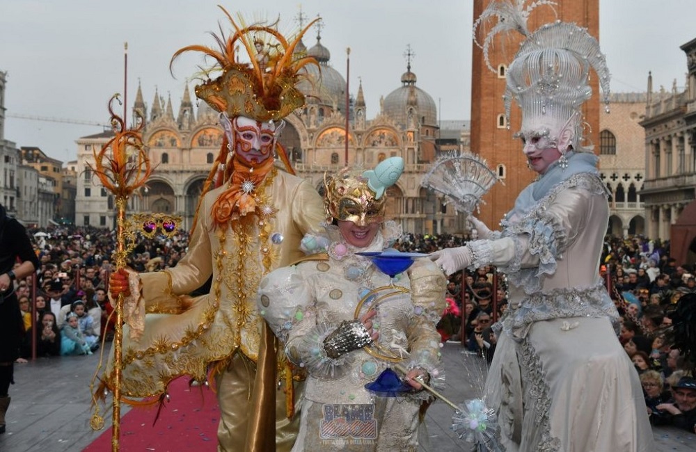 Prvotni karneval je vseboval mnogo starogrških in rimskih elementov, od katerih so jih nekaj pozneje opustili, mnogi pa so se nekoliko spremenjeni ohranili do danes. V srednjeveških časih so na Trgu sv. Marka, nabrežju Riva degli Schiavoni in po vseh večjih trgih v mestu postavljali stojnice s hrano in pijačo – pekli so fritolle (drobne krofe), prodajali sladki kostanj in sladice iz oddaljenih krajev. Trobente, piščali in bobni so se oglašali cele dneve. Prirejali so razkošne ognjemete, Castellani in Nicoletti (fantje iz obeh bregov Canala Grande) so tekmovali v „Herkulovi moči”, oz. kdo bo napravil višjo človeško piramido, plesala se je moresca (španski ples, ki simbolizira bitko med kristjani in Mavri). Vrstile so se predstave v satiričnih lutkovnih gledališčih na prostem, eksotične živali so poplesovale na takte glasbe. Množično se je igrala loterija, jasnovidci so napovedovali prihodnost, zoboderi so ponujali poceni storitve, mazači so prodajali čudežne zdravilne napitke. Tri dni in tri noči so maske pile, pele, plesale in se zabavale na dvorišču palače Fondaco dei Tedeschi (današnje največje nakupovalno središče ob Rialtu). Vrhunec dogajanja je predstavljal atraktiven, vendar nevaren „golobičin let”, ko je posebej usposobljen akrobat po žici drsel z zvonika Campanile vse do Doževe palače in spotoma s cvetlicami posipal navdušeno množico pod njim! Na pustni torek so rajajočo gručo mask zvonovi cerkve San Francesco della Vigna ob polnoči opomnili, da je konec veselja in da prihaja čas, ko se bo treba postiti in pokesati.